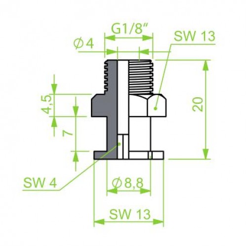 Another 1/8" male thread fitting for use with suction cups with a hexagon socket size of 4, designed for high-performance and robust connections.
