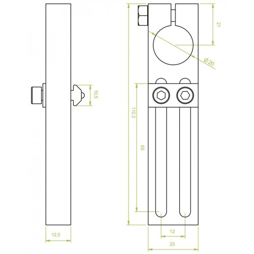 Another variation of the adjustable angle clamp, featuring a 20mm clamp diameter and 65mm adjustable length, providing flexibility and secure attachment with channel nuts.