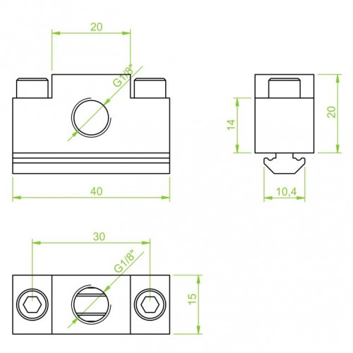 A sturdy angle connector with 2x G 1/8" female threads, designed for strong connections and easy setup with included channel nuts.