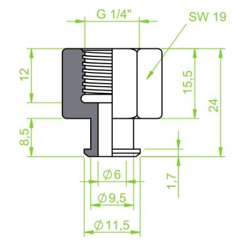 A female thread fitting for use with vacuum cups with 1/4" size, used in a variety of setups for reliable thread connections in medium-sized systems.