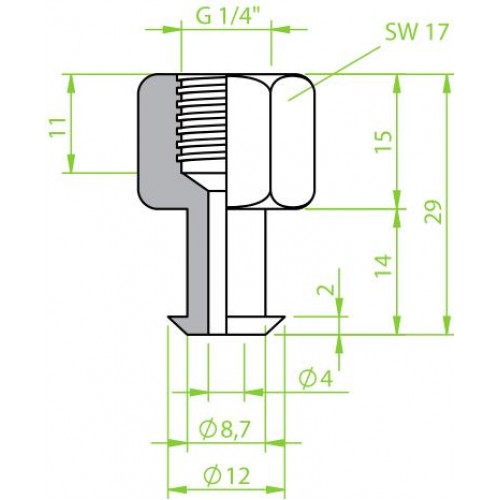 A 1/4" female thread fitting for use with suction cups used for secure connections in various applications.